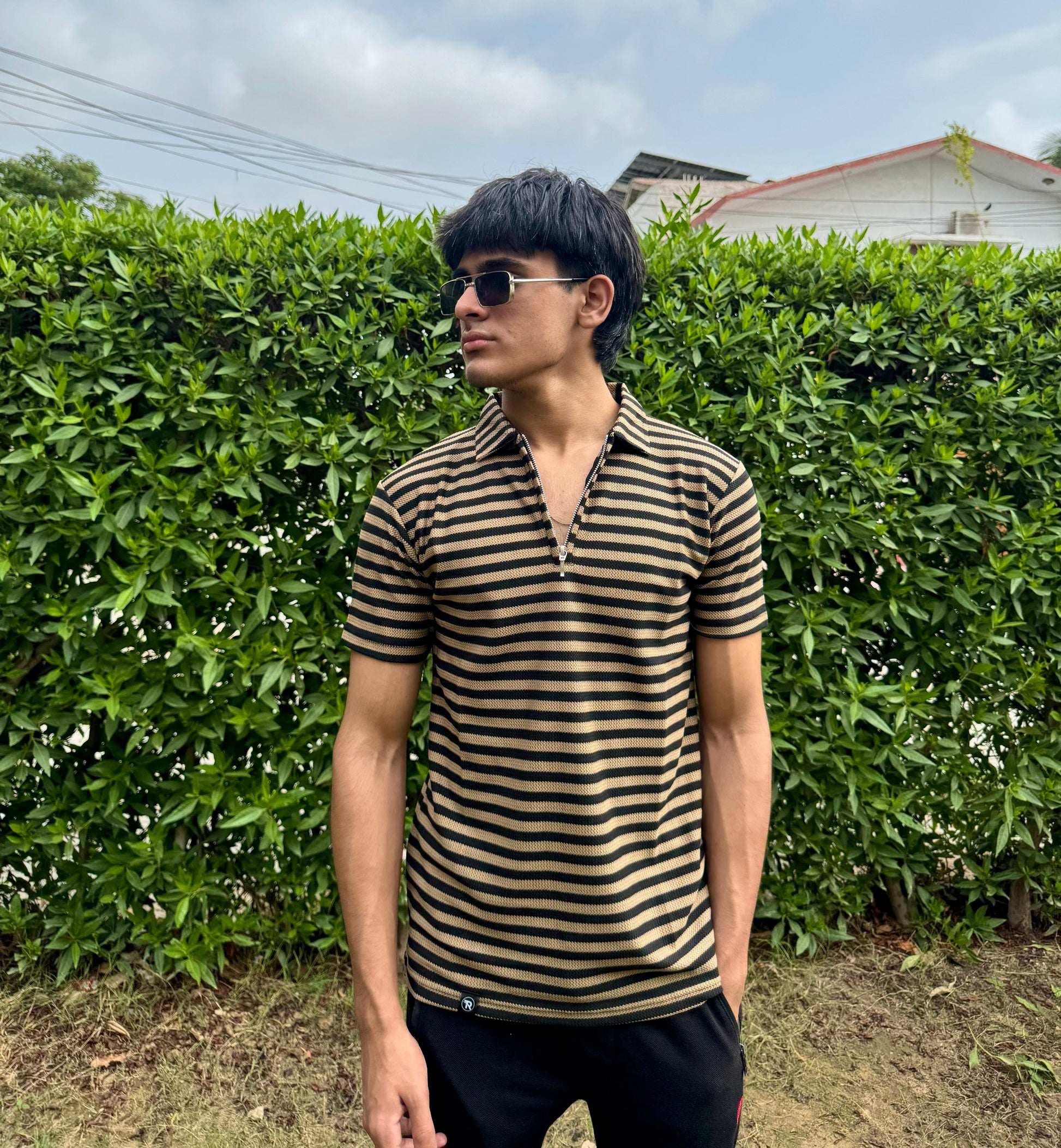 Black & Brown Knitted Zip Polo